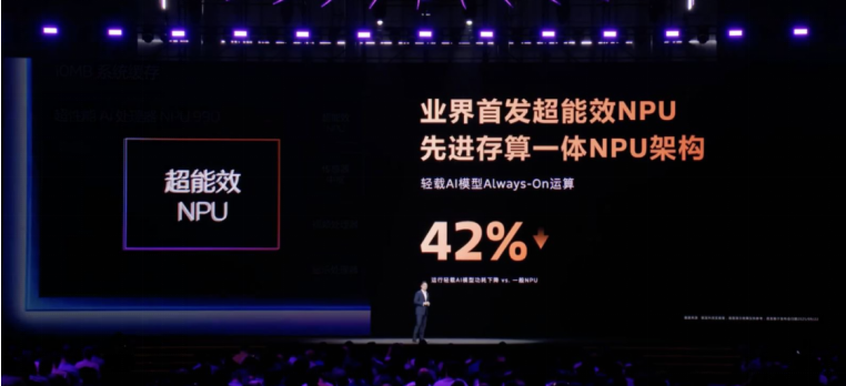 超能效NPU采用先进的存算一体架构,将运算单元与内存单元融合,大幅减少数据搬运过程中的功耗损耗,运行轻载AI模型相较传统NPU功耗降低42%,让AI功能“常驻运行”成为可能,以更先进的主动式AI进一步提升终端用户体验。除此之外,这颗超能效NPU在诸如人脸识别、场景识别等场景中表现优异,让端侧AI真正拥有主动性。